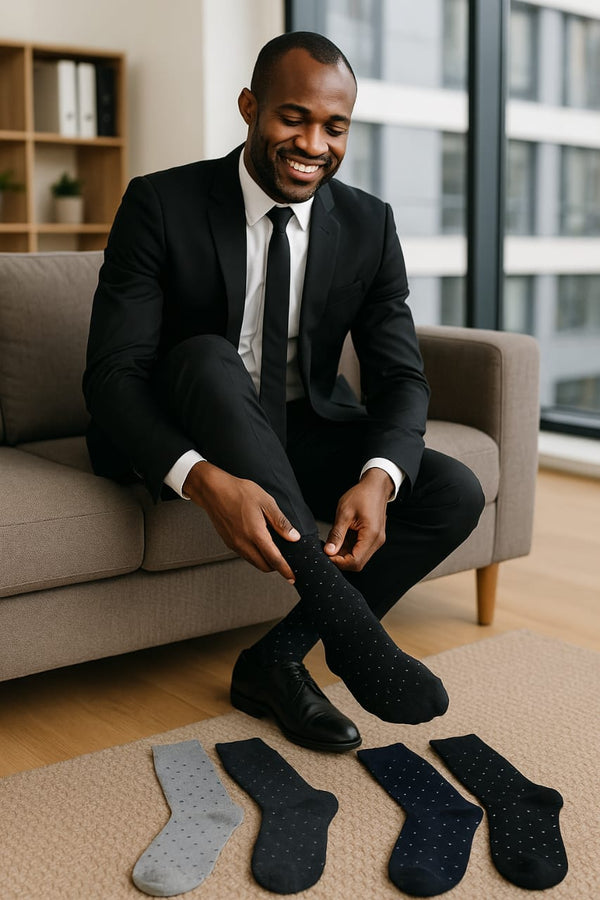 Timeless with subtle patterns — effortless coordination with suits.• Reinforced Heel & Toe