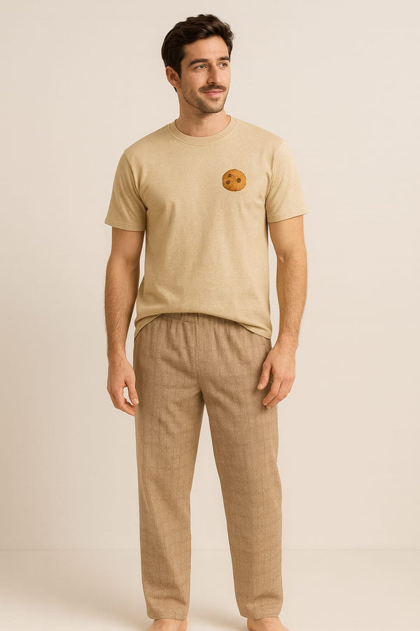 - Stylish Combo – Solid knitted T-shirt paired with playful woven printed pajama pants for a cozy-chic look.