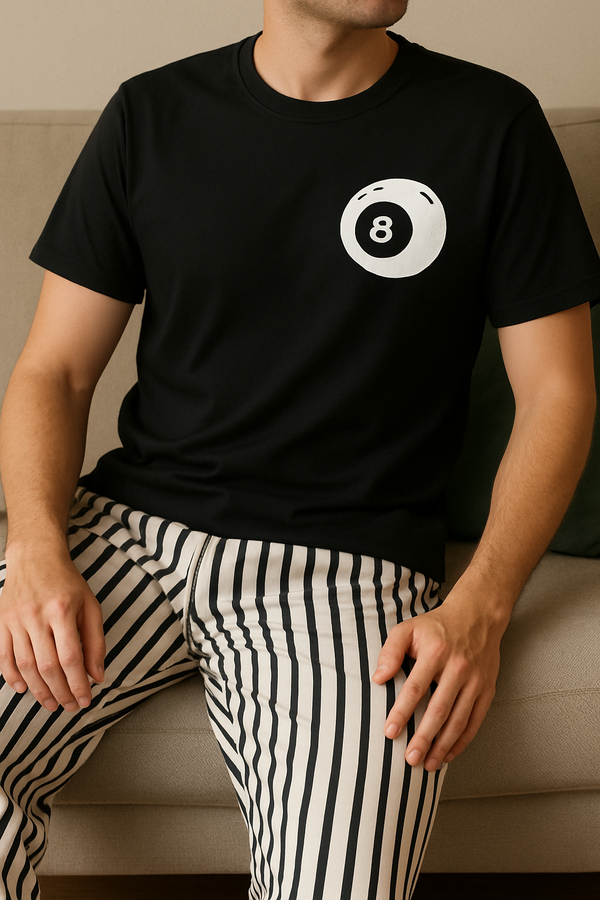 · Stylish Combo – Solid knitted T-shirt paired with playful woven printed pajama pants for a cozy-chic look.
