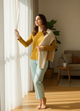 · Stylish Combo – Solid knitted T-shirt paired with playful woven printed pajama pants for a cozy-chic look.