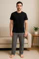 - Stylish Combo – Solid knitted T-shirt paired with playful jersey printed pajama pants for a cozy-chic look.