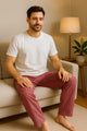 - Stylish Combo – Solid knitted T-shirt paired with playful jersey printed pajama pants for a cozy-chic look.